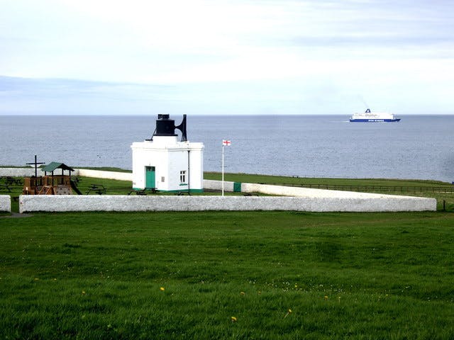 As the brass players filed in, a quiet descended. This reverent silence was broken by one high clear note, sounded by a single trumpet player from the top of the lighthouse. Then the brass began, and a sequence of sombre phrases was lifted by the breeze, the notes carried out to sea. The ships and boats replied in harmony – tuned to the notes of the brass – as if they were an echo from the vast landscape itself. They answered in staggered and idiosyncratic voices, the ferry loud and adenoidal, the small ships pinched and whinnying. Their conversation, between brass and boat, colliery and maritime, filled the blue-grey seascape from the cliffs we stood on all the way to the distant horizon, a mournful exchange on a scale much bigger than ourselves, as if these industries had been given voices with which to compare misfortunes.