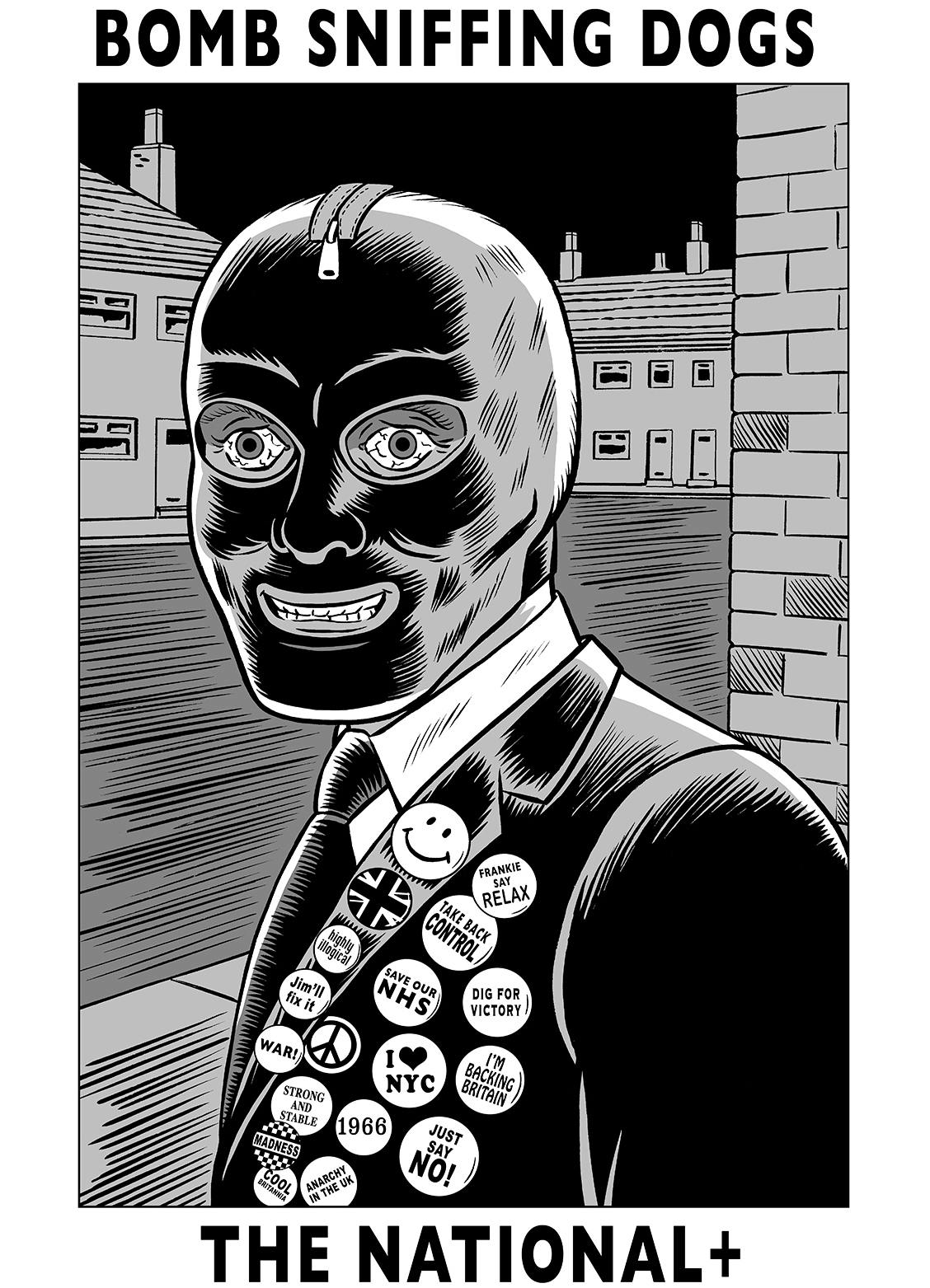 Ahead of their new EP release – ACID ZOO – next month, The White Hotel’s BOMB SNIFFING DOGS have sent us their new single and video – THE NATIONAL + – via track and trace.