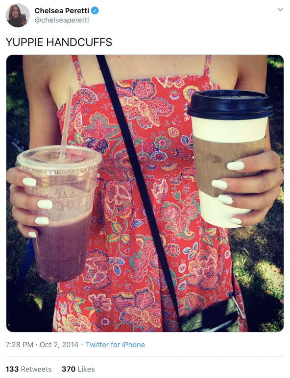 Chelsea Peretti is my favourite. Peretti, for me, has been a consistent humour compass. Content-wise, she’s boss level across the board. I think about this 2014 tweet often