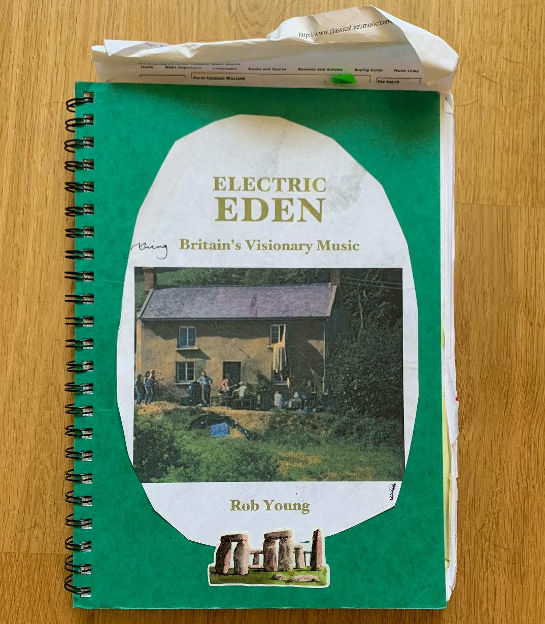 I still have the spiral bound notebook that was my companion while writing, where I would note down my historical research and annotate my real-time reactions to listening to music recordings. I also have the large, floppy Philip’s Multiscape Britain 2000 road map of Britain which became my alternative atlas. I circled and highlighted many of the locations mentioned in the book, like the Aston Tirrold cottage where Traffic got it together in 1967; Bron-yr-Aur, where Led Zeppelin wrote the folkier parts of their Four Symbols LP; and the Scottish estate of Lord Glenconner where the Incredible String Band had their commune. This fantasy map overlaid upon the real one reinforced the sense of Electric Eden as a ‘nation underground’, an alternative domain with its own anti-urban geography.