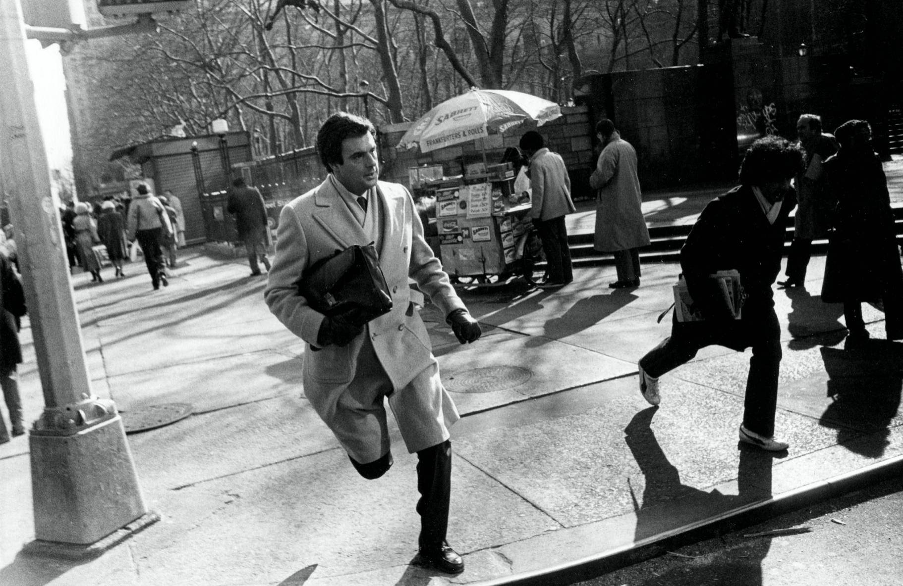 He knows how to juxta-pose. A fur-coated matron beneath a sign advertising “Heavenly Coffee.” The preacher by the Times Square subway station where an airline advertisement says “Save As You Go.” Sometimes there’s a punchline – the nun walking past a bus where a nude-from-the-waist-down model is pulling on a pair of designer jeans – and sometimes there’s just streetscape, the random people strolling past you, each with their own tale, the life they’ve living written on their faces and body language and clothes they’re wearing. Most aren’t smiling.